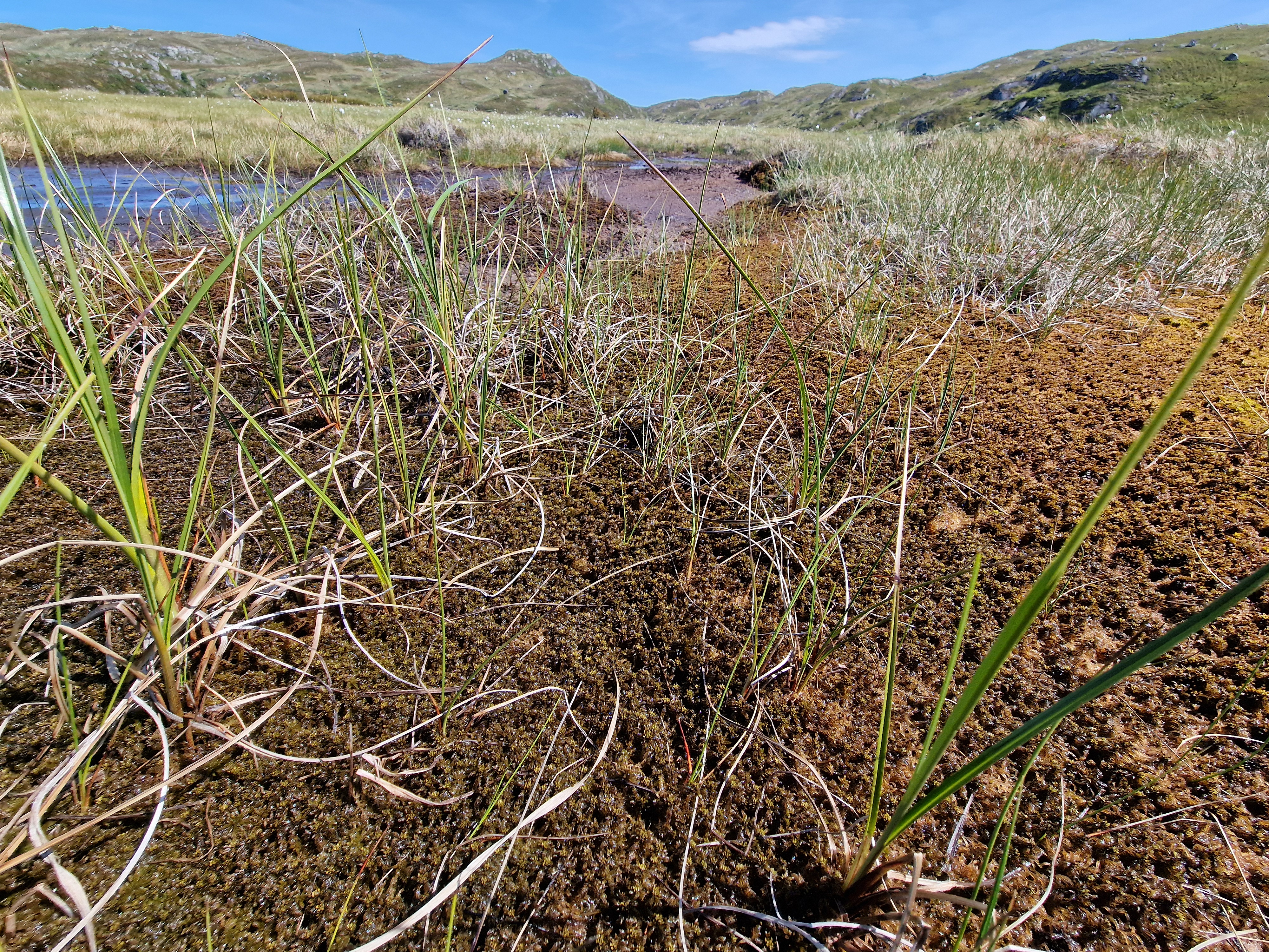 . On the “hummock-mud-bottom” vegetation gradient it usually forms high-level carpetsVery soft peat surface dominated by bryophytes with sparse sedges, often from a few centimetres below to a few centimetres above the water table; footprints remain visible for a long time